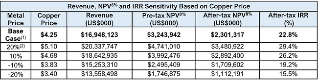 All-in Sustaining Costs ("AISC"): AISC is reflective of all of the expenditures that are required to produce a pound of copper from operations. AISC reported in the PFS includes total cash costs, sustaining capital, expansion capital and closure costs, but excludes corporate general and administrative costs and salvage.
